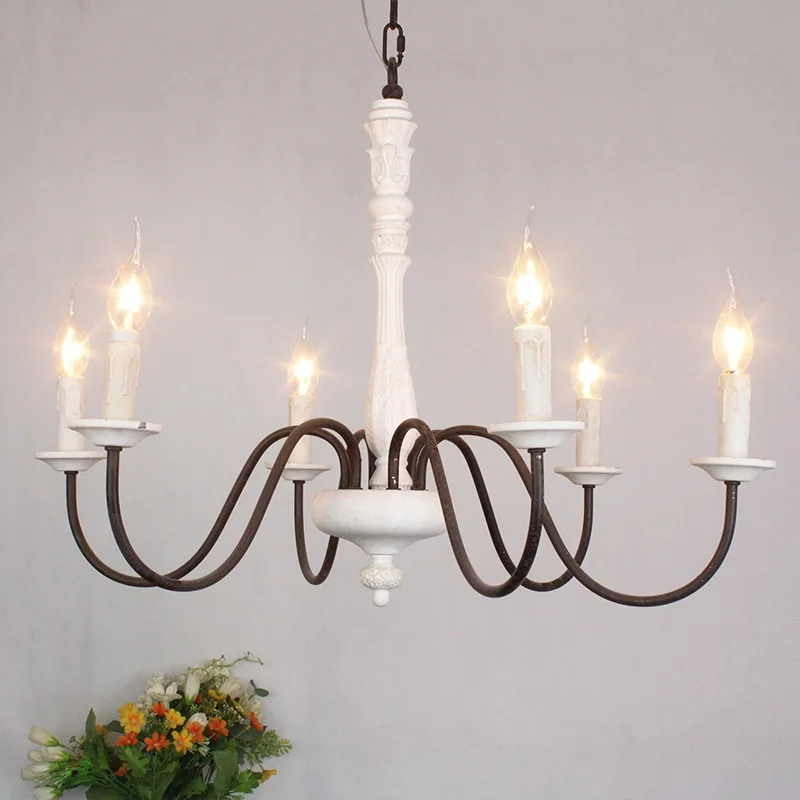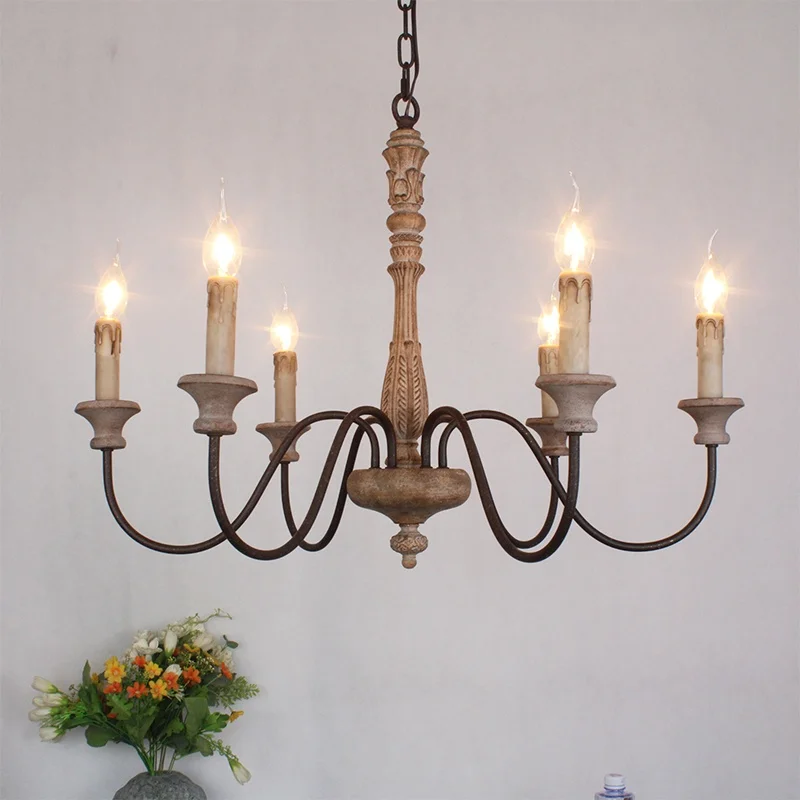 European Country Vintage Pendant Light American Retro Solid Wood Design Adjustable Height Japanese Pastoral Candle Style for