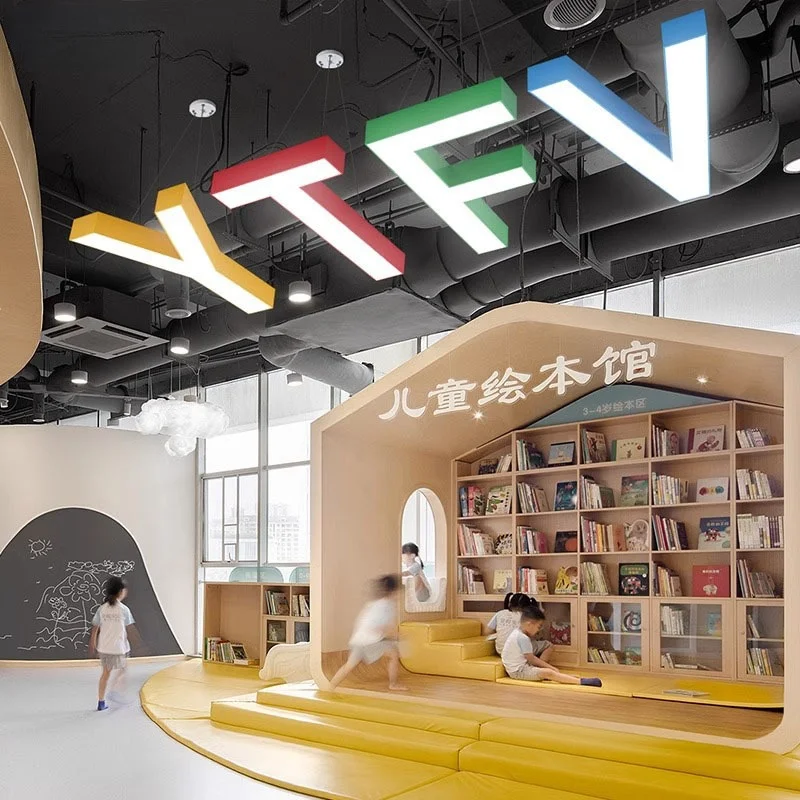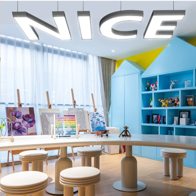 Modern Style Letter-Shaped LED Ceiling Chandelier Customized Design for Kindergarten Studio Library Classroom