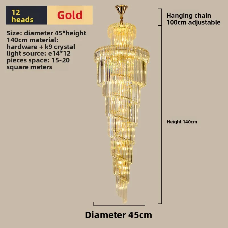 Rotating Iron Staircase Crystal Chandelier for Villa Hotel Wedding Lobby Living Room Open Staircase Light Design Ceiling