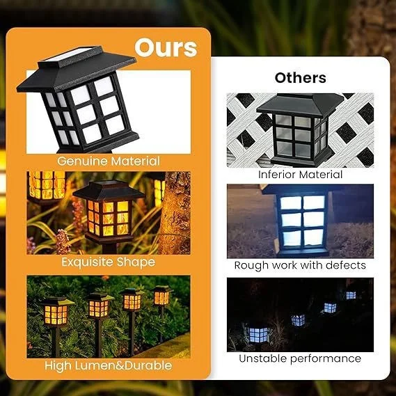 Gränsöverskridande IP65 vattentät LED-landskapslampa, solpanel, utomhuslampa för gräsmatta, litet hus, palatsinnergård, villa och trädgård