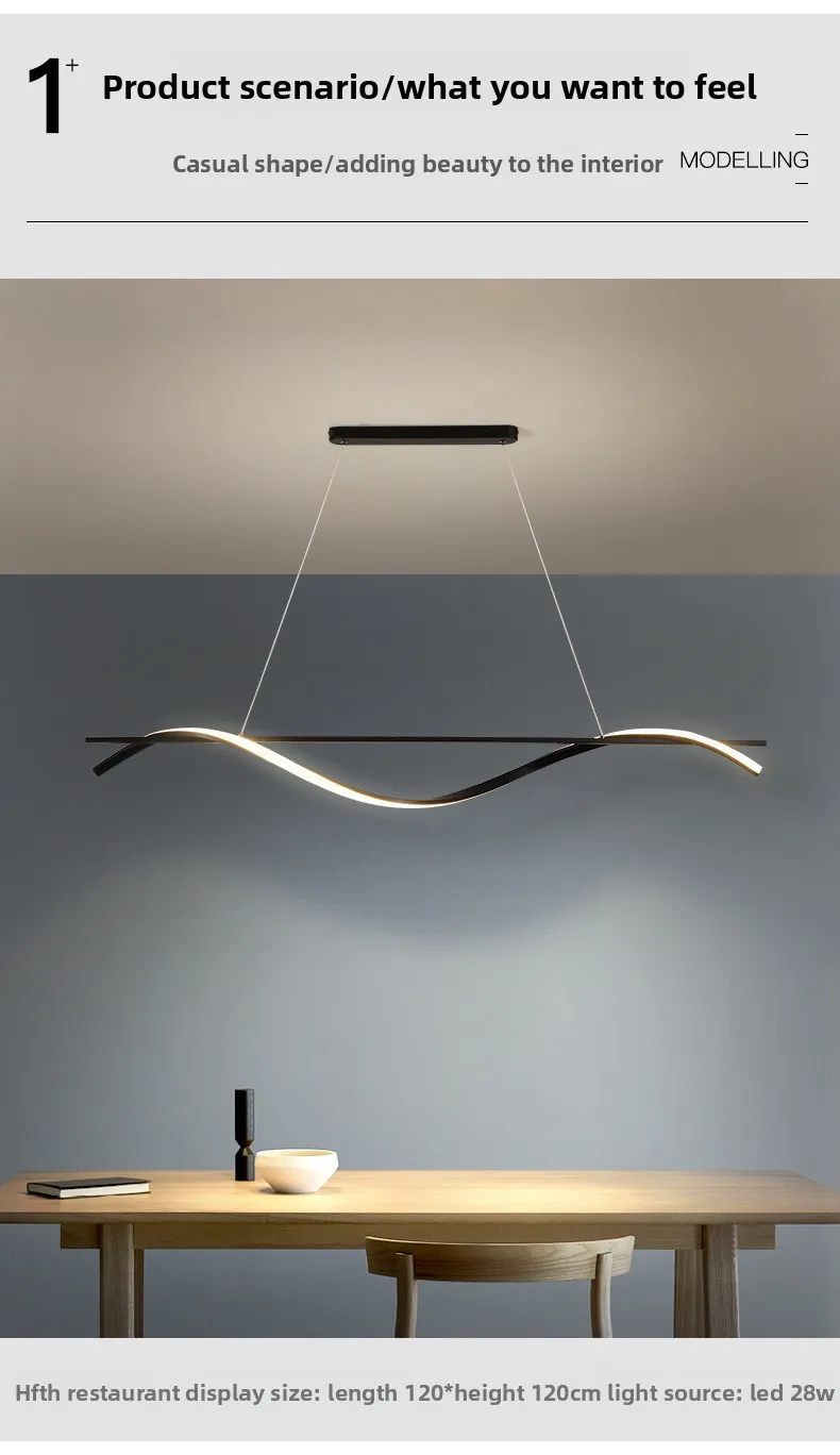 Gränsöverskridande restauranghänglampa, LED, kreativ, modern, nordisk design, kontor, bar, diskbänk, belysning, minimalistisk linjär strimla för matsal