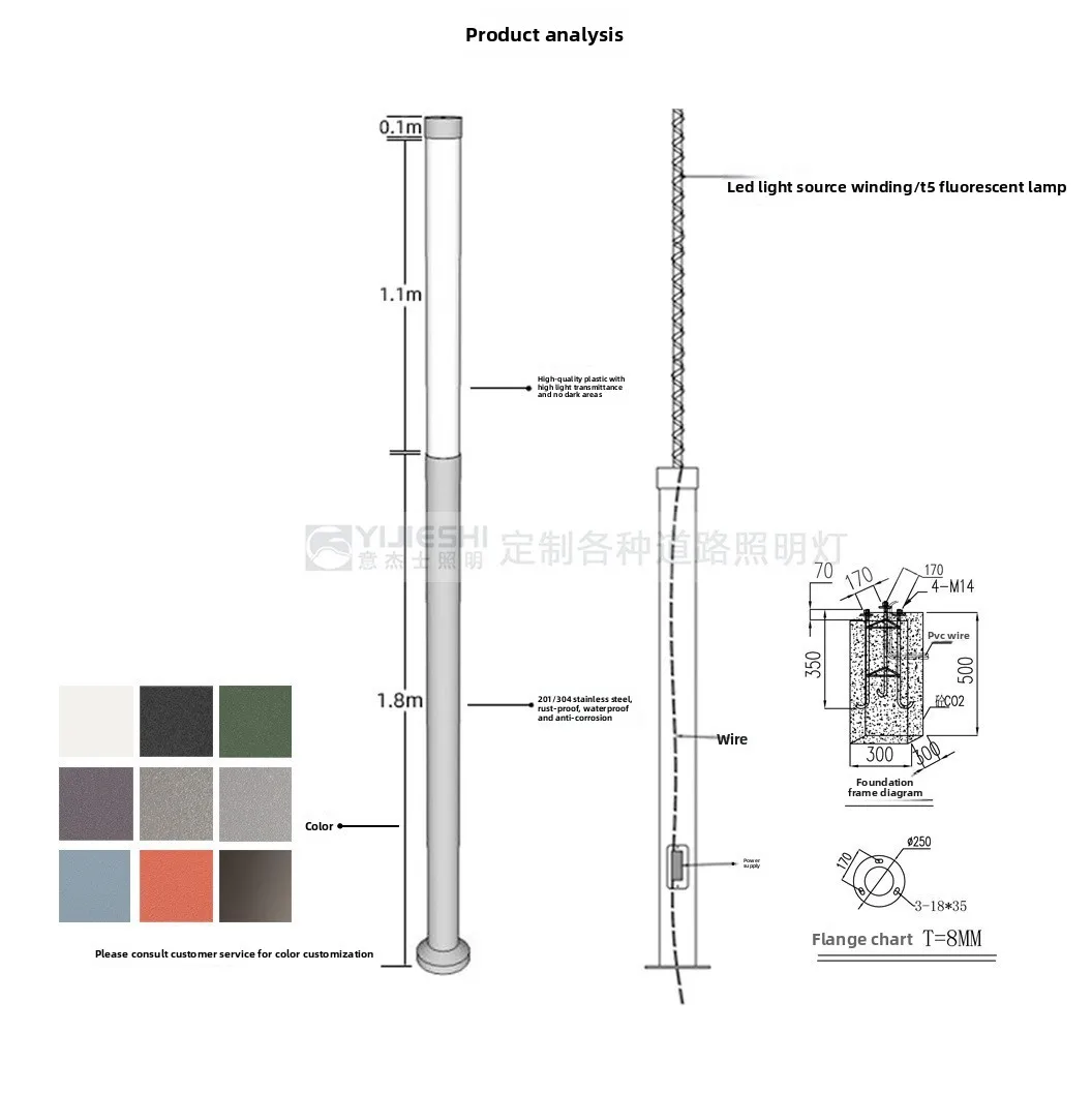 Direkt från fabrik, anpassade stolpar i rostfritt stål för cylindrisk LED-trädgårdslampa, 3 m, utomhus, IP65, parkbelysning för trädgårdar i bostadsområden
