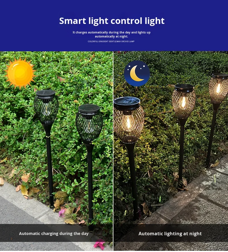 IP65 vattentät liten utomhussolbelysning i gräsmatta, markinfälld vävd nätträdgårdsdekoration för gård, landskap, stig