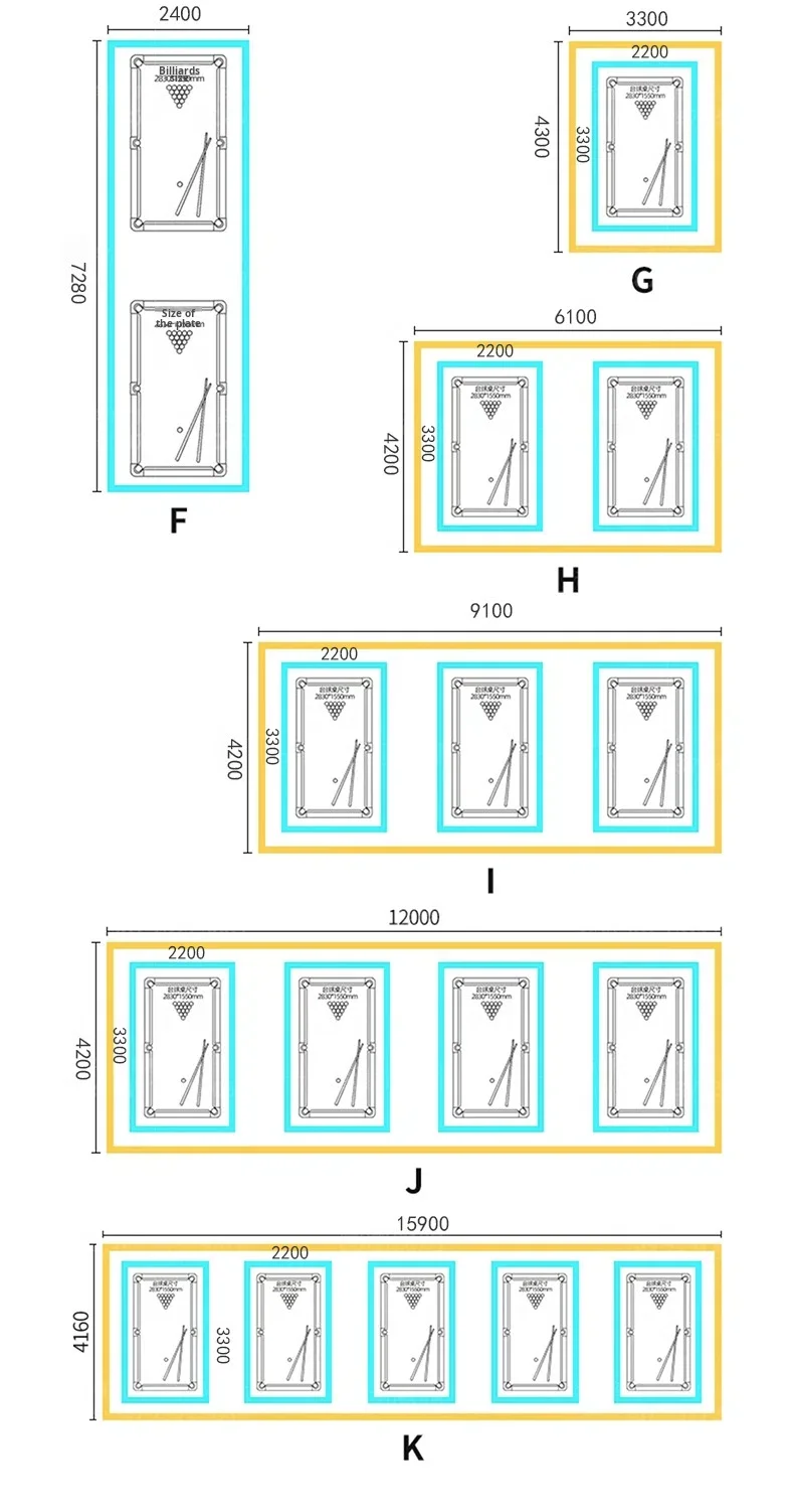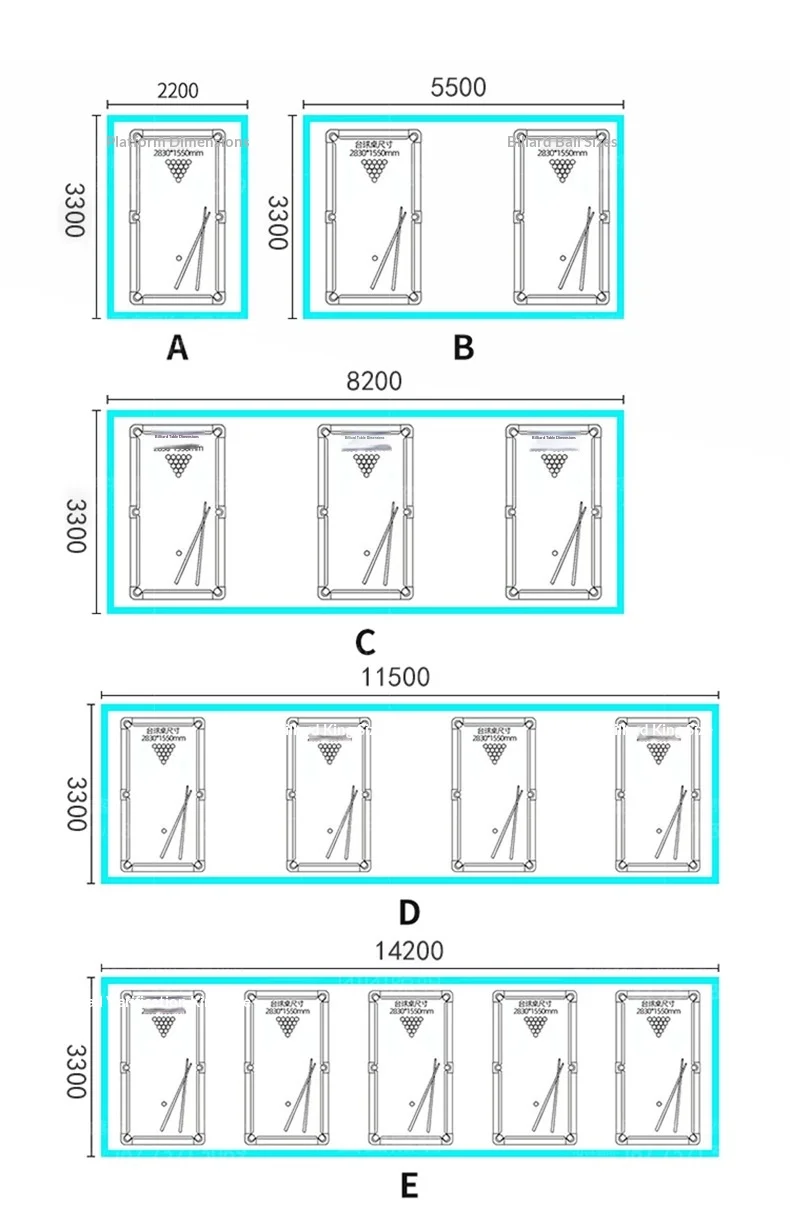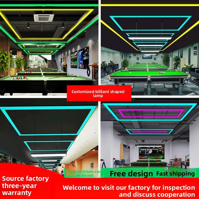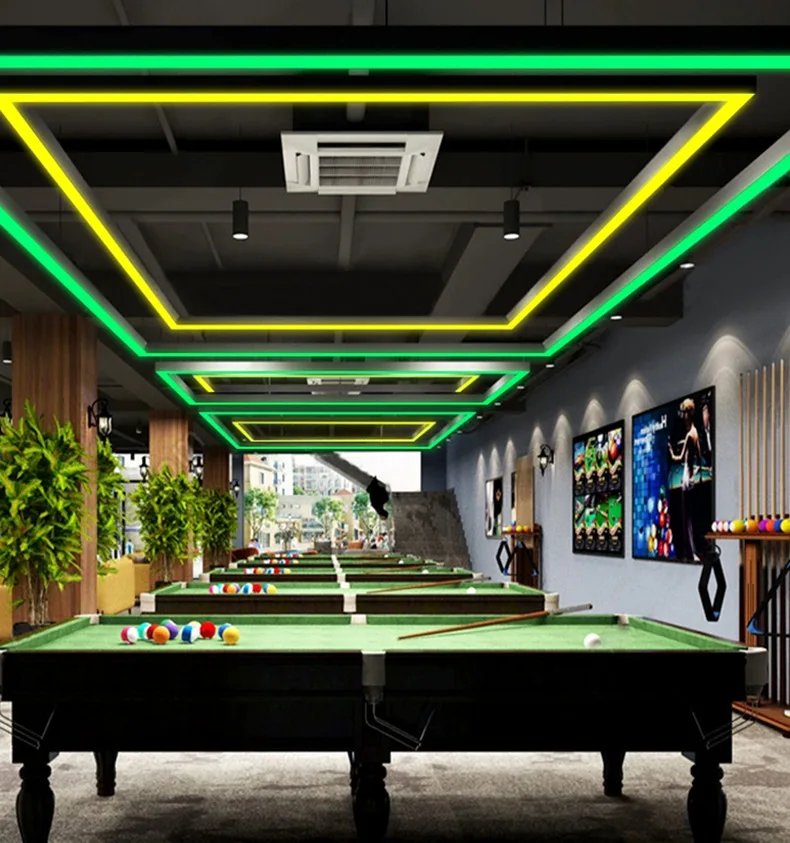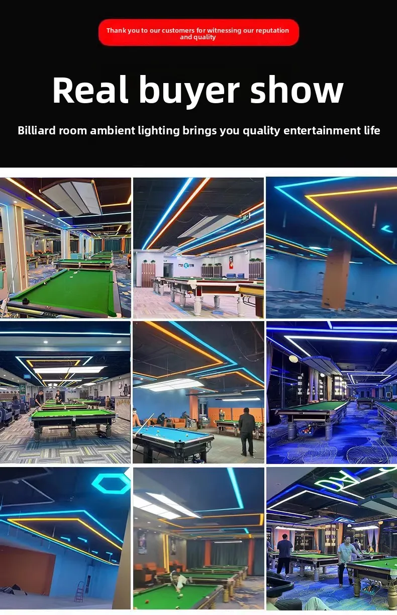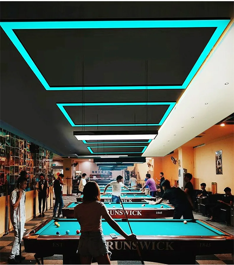 - Billardhallar monokromatiska (t.ex. cyan) stripbelysningar + mörka tak = modern, tydlig belysning för spel samt elegant stämning.