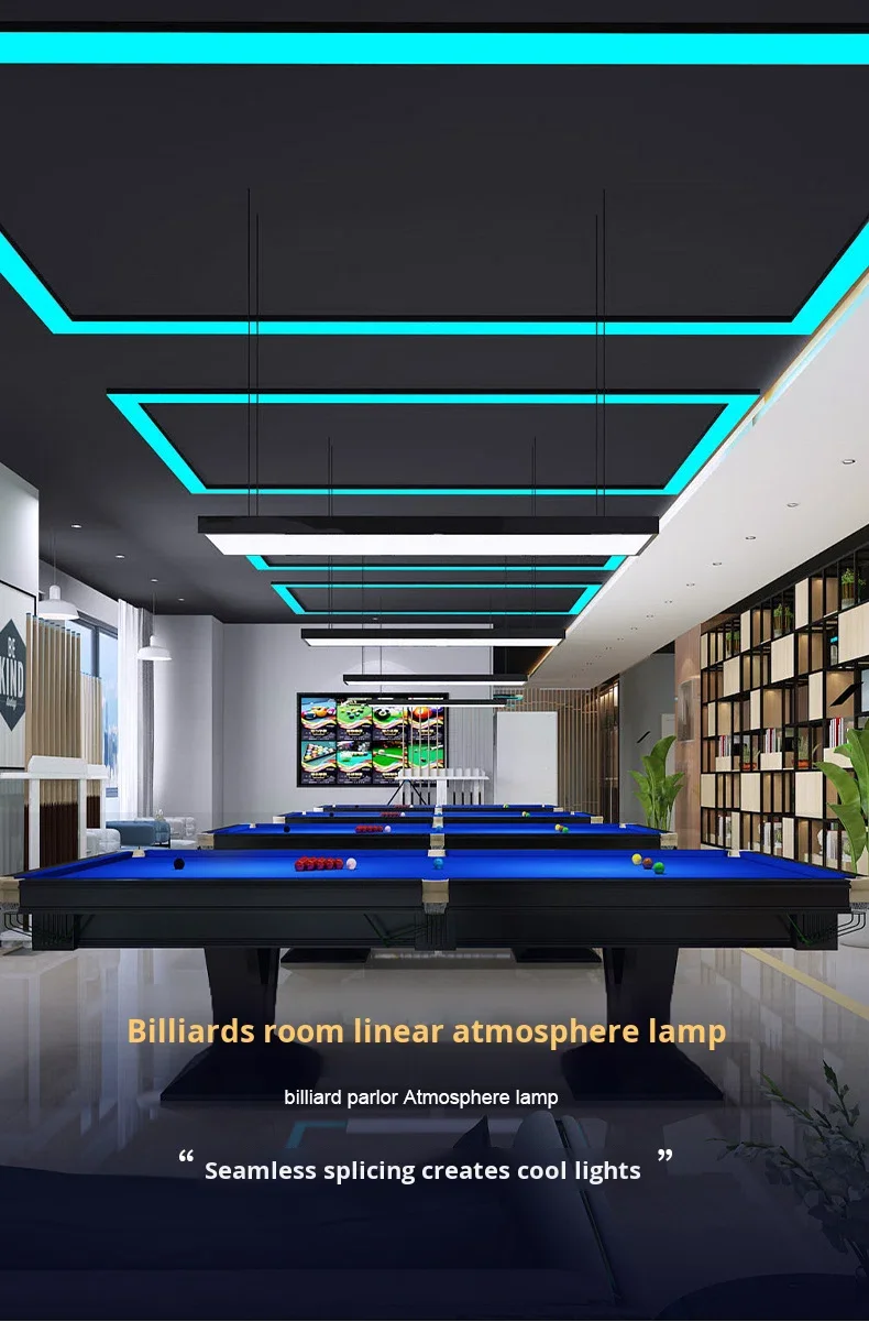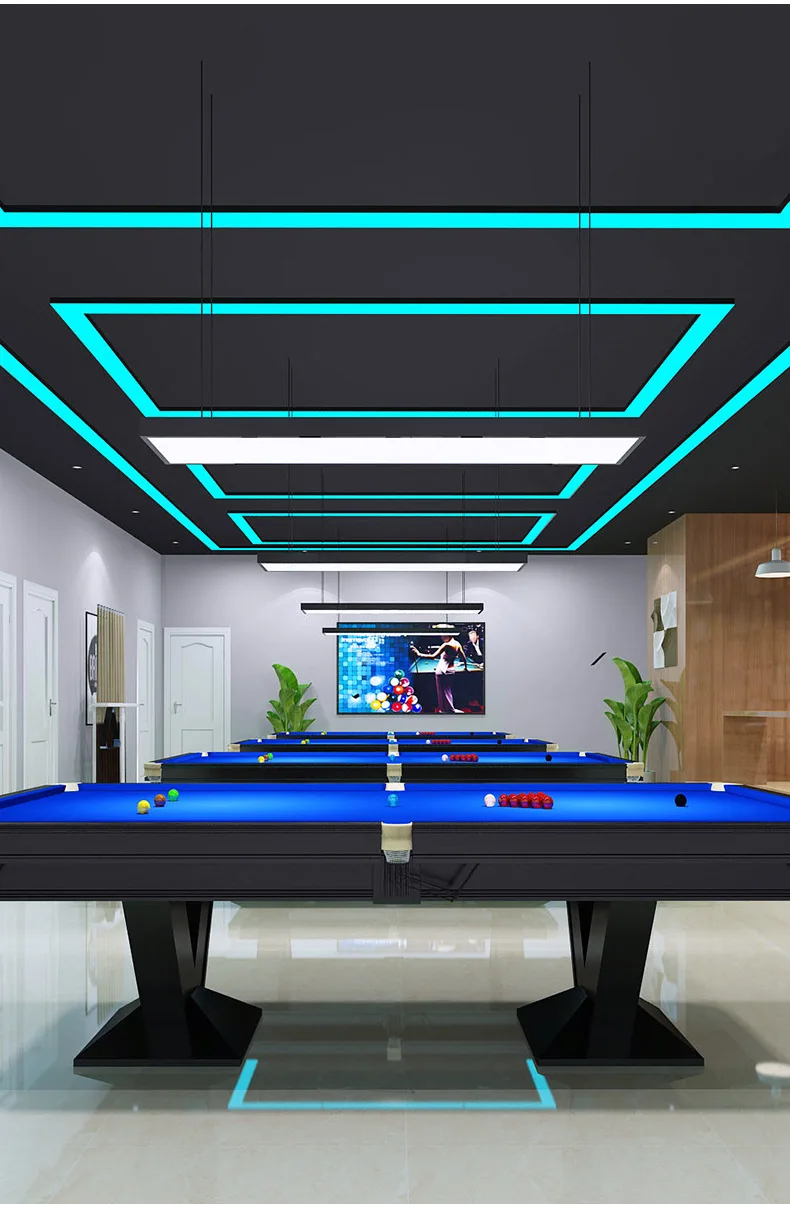 LED-taklampa hängande inbyggd pendellampa linjär belysning för kontor, gym, frisörsalong, hotell, livsmedelsbutik, ljusblå simning