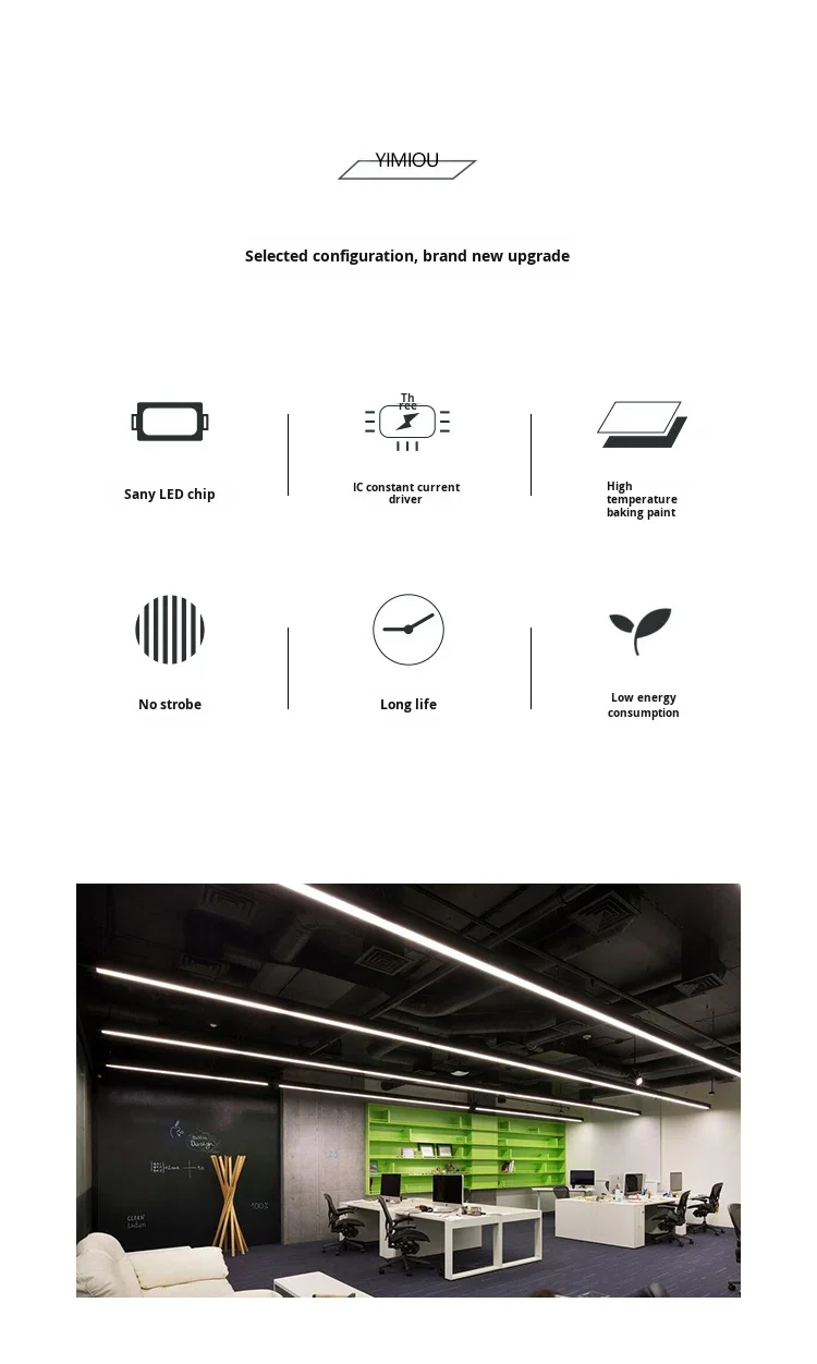 Vår serie LED-linjärlampor omfattar ett komplett utbud av högkvalitativa produkter, inklusive LED-batten, LED-rör, inbyggda linjärlampor, hängande linjärlampor och linjär chandelier, tillsammans med matchande tillbehör som profil-LED, aluminiumlinjär och aluminiumprofil. Alla produkter har en premiumaluminiumkropp (tillgänglig även i svart aluminium) för utmärkt värmeavledning och lång livslängd, vilket uppfyller de strikta kraven för kommersiell och bostadsljusinstallation. De är utrustade med mångsidiga funktioner såsom dimbar styrning, RGB-LED-effekter och justerbar färgtemperatur, vilket gör att man kan skapa anpassade ljusmiljöer för olika scenarier. Flera installationsmetoder stöds, inklusive ytmontage, inbyggt montage och hängmontage, vilket gör dem idealiska för kontorsbelysning, fasadbelysning, dekorativa applikationer och även linjär marknivå-/underjordisk belysning. Kompletterade med kopplade LED-designer, sensor-LED-alternativ och modern linjär estetik erbjuder våra produkter omfattande och högpresterande belysningslösningar för olika behov.