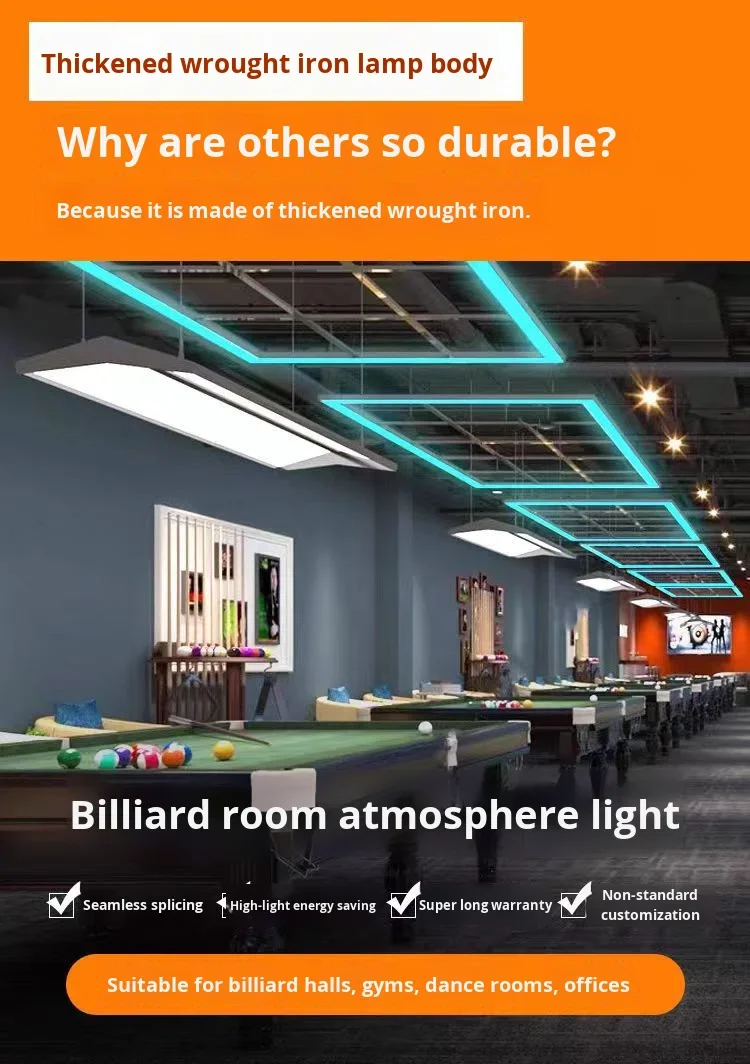 Modern industriell akryl linjär hänglampa, upphängd eller ytmontedad LED-hänglampa för kontor och livsmedelsbutik