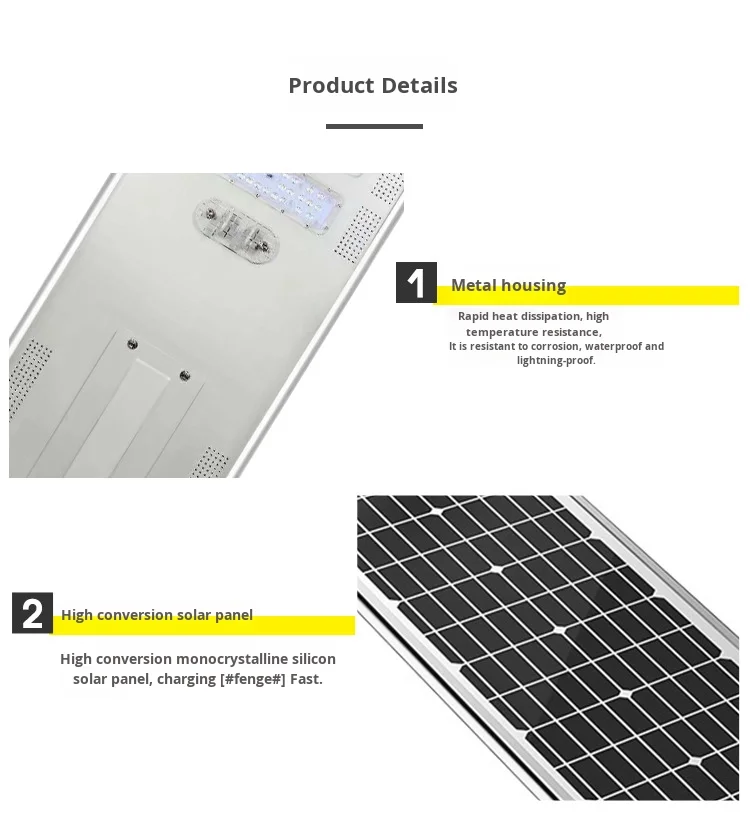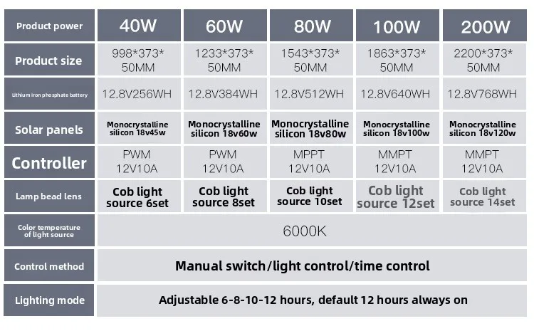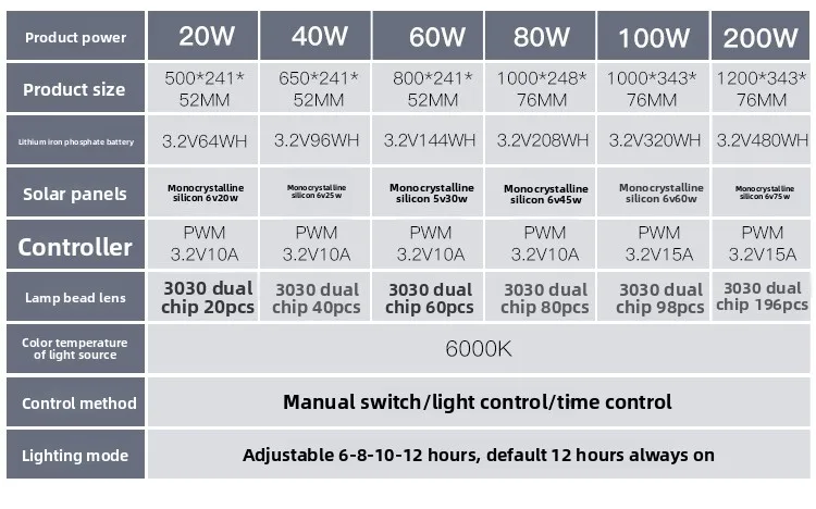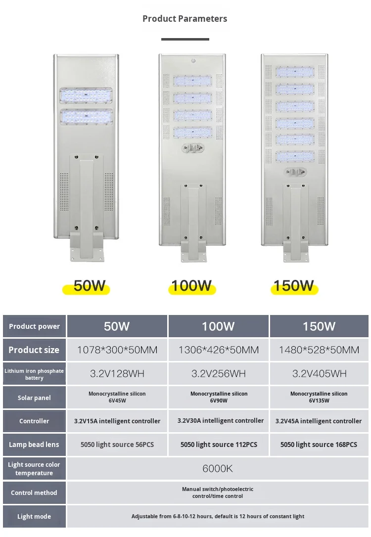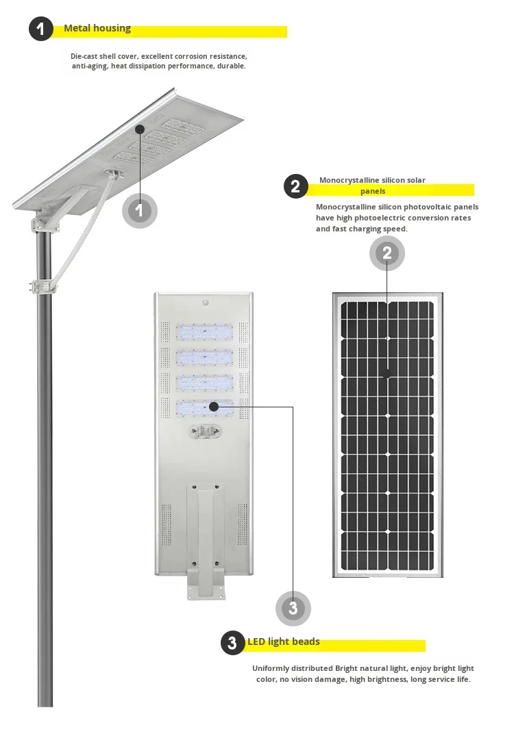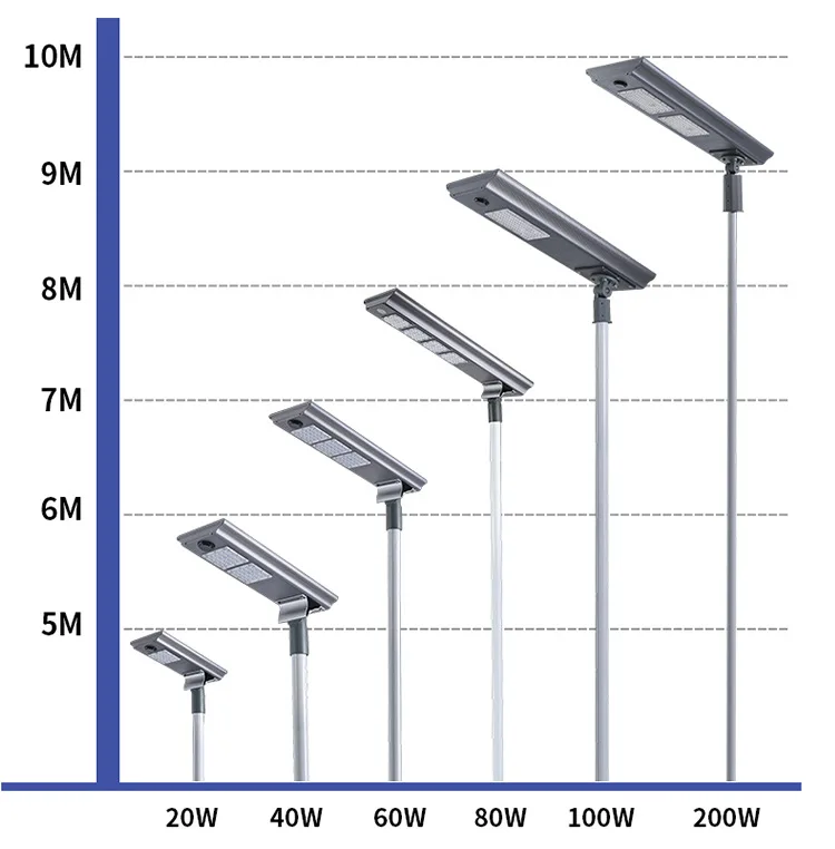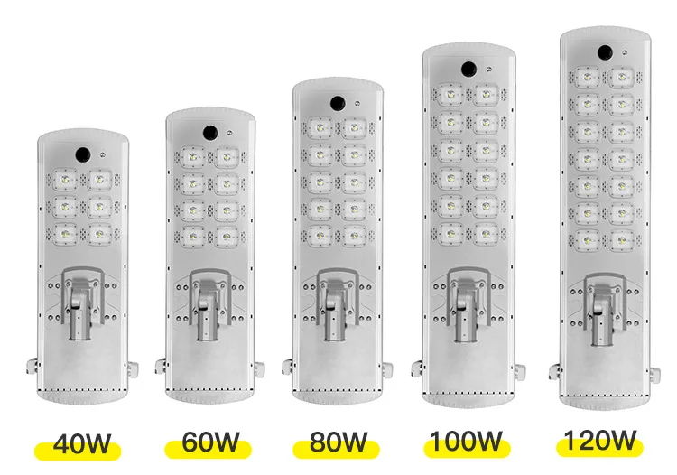 Ute vattentät aluminium 20 W 40 W 60 W 80 W 100 W 200 W integrerad allt-i-ett solcellsgatubelysning med LED