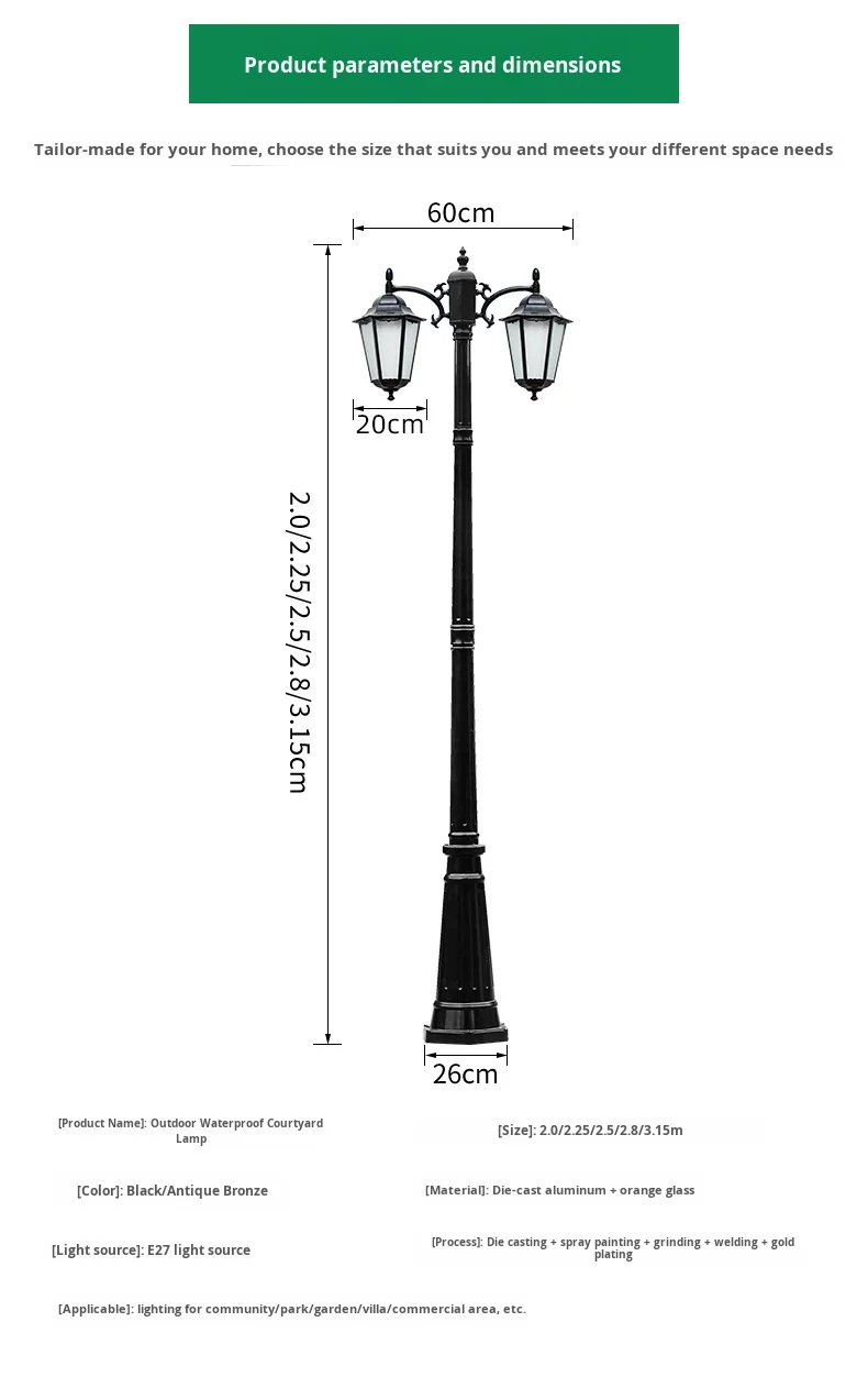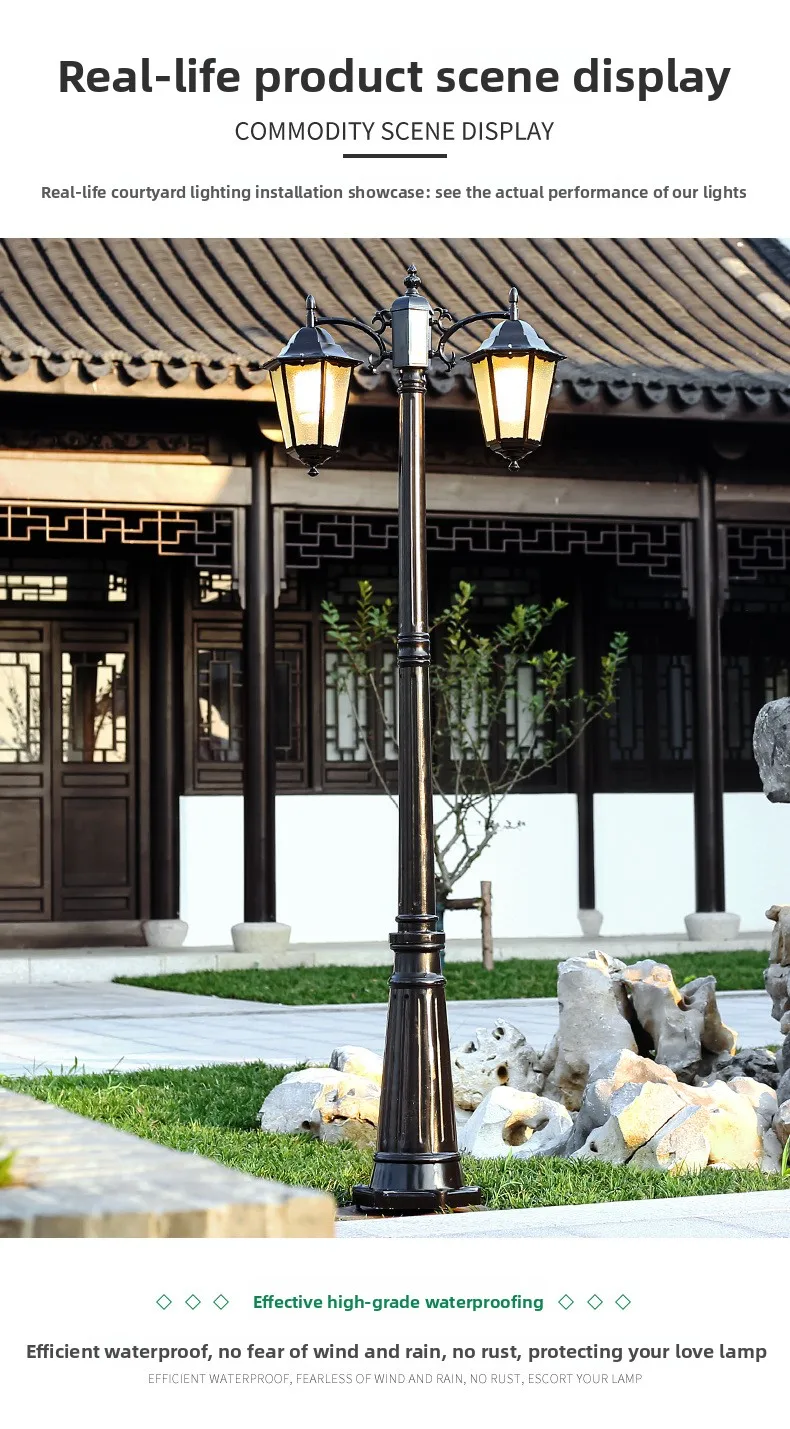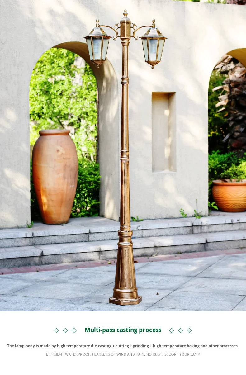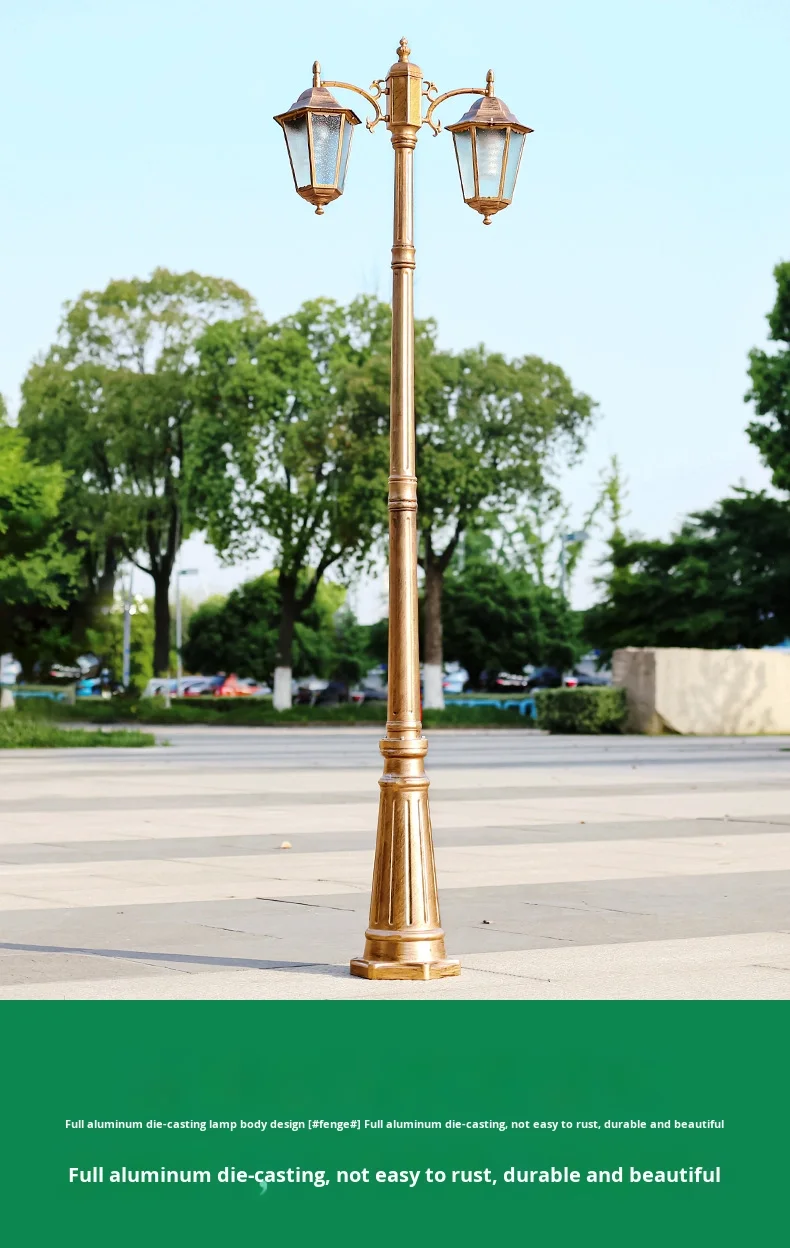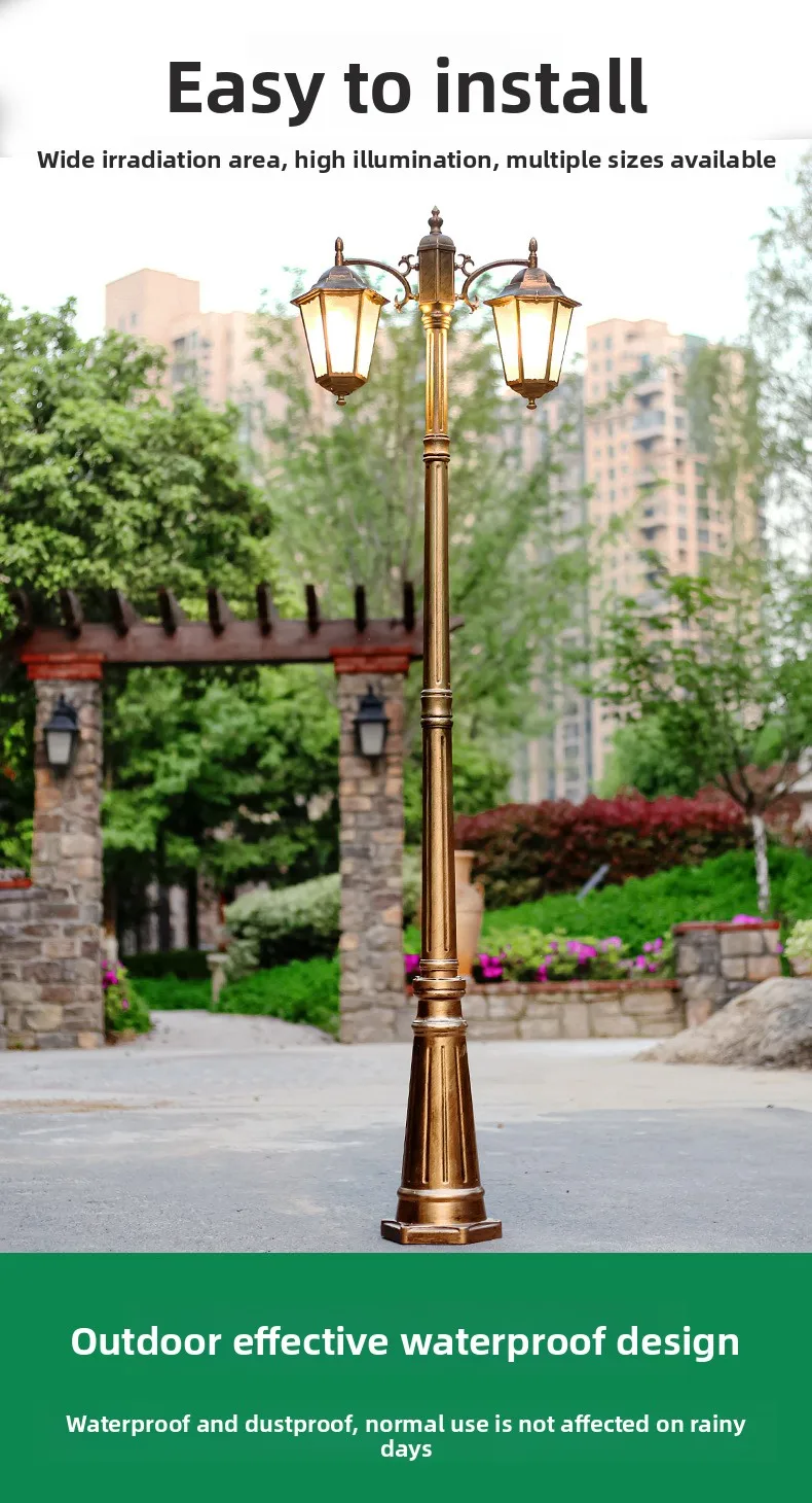 Avrupa Tarzı Çift Başlı LED Bahçe Işığı Akıllı Dış Mekân Su Geçirmez Retro Bahçe Peyzajı Antik Sokak Lambası Güneş Enerjili