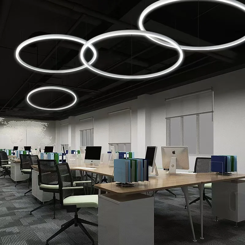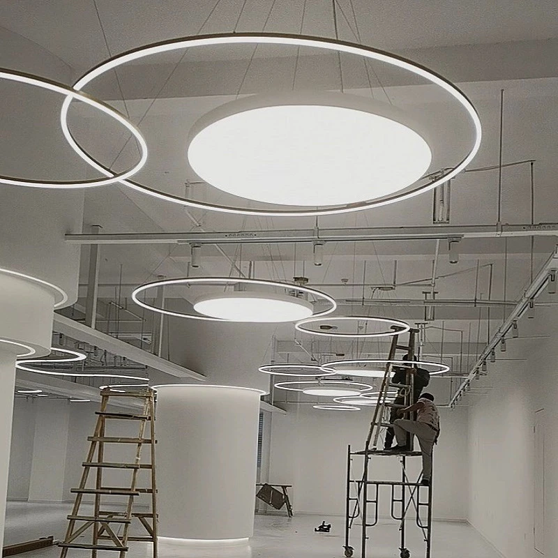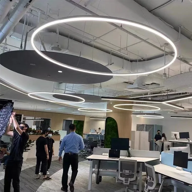 1. Yenilikçi Tasarım: Akustik Dairesel LED Asma Kiriş, yatak odaları, otel odaları, ofisler ve süpermarketler dahil olmak üzere çeşitli iç mekân dekorlarını tamamlayan şık bir dairesel tasarımı ve farklı lamba boyutları (0,45 m, 0,6 m, 0,8 m, 0,9 m, 1 m, 1,2 m) sunar.