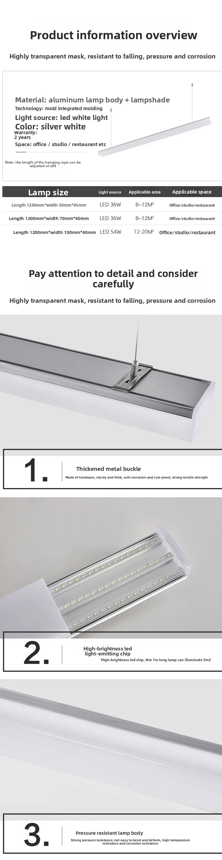 Modern Basit Alüminyum Askılı Doğrusal Lamba Ofis Spor Salonu Ticari Aydınlatma İçin Sallanan Doğrusal Işık